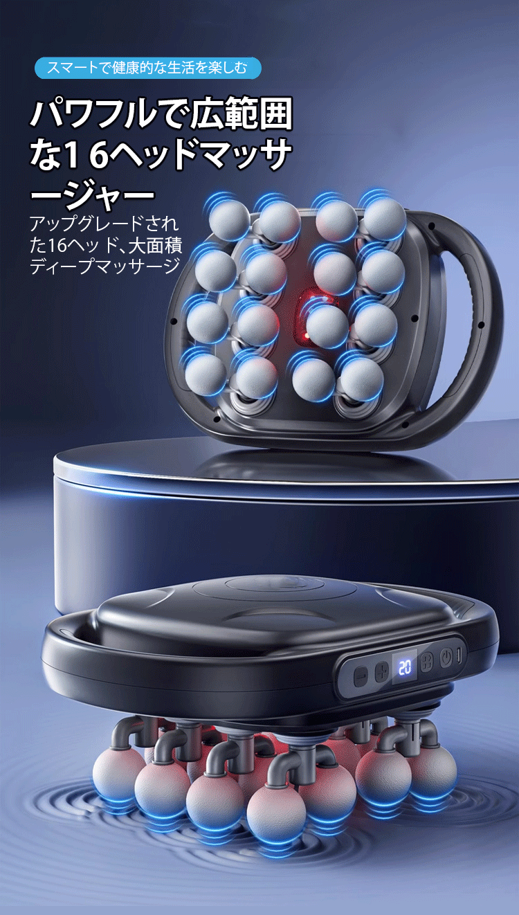 16頭筋膜ガンは強力で広範囲に全身をマッサージします。