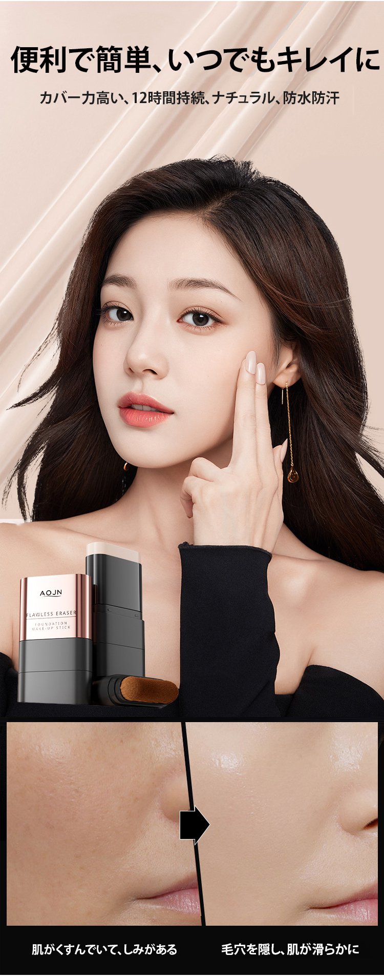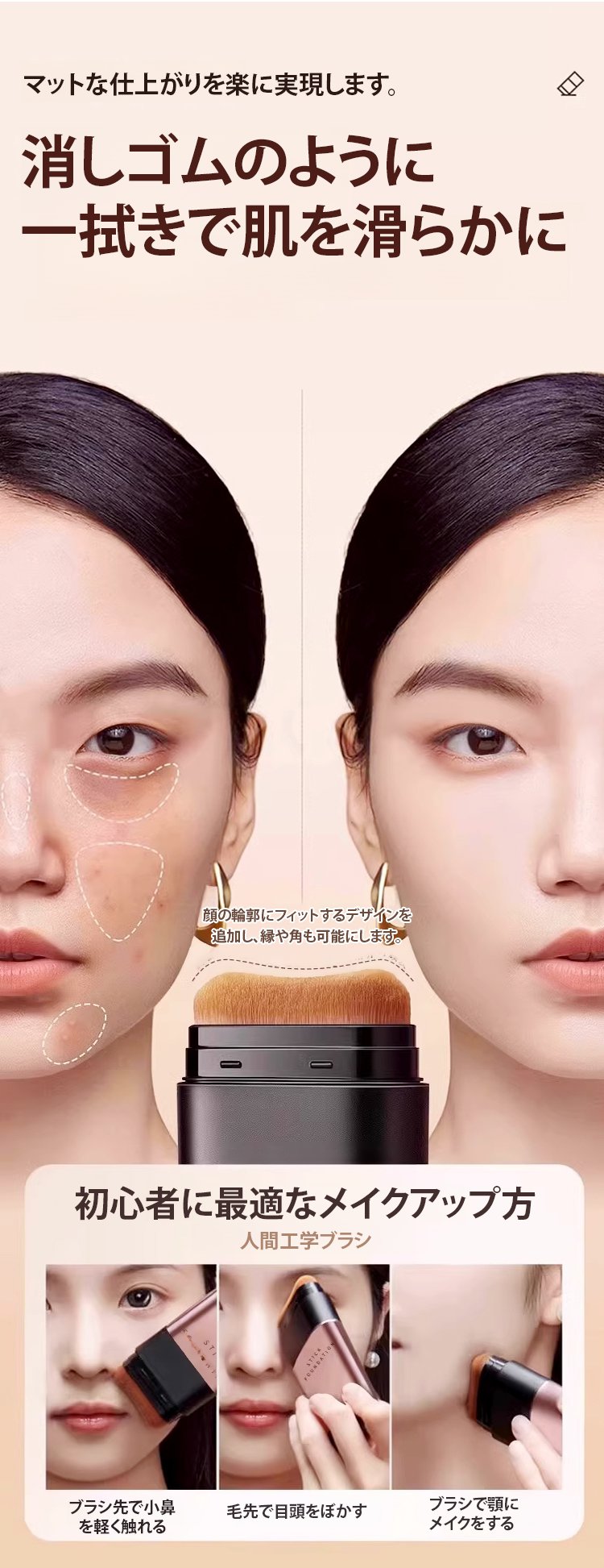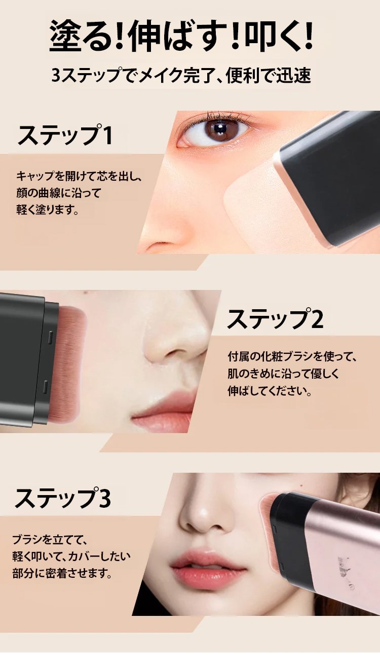 【24時間持続】ブラシ付きファンデーションスティック