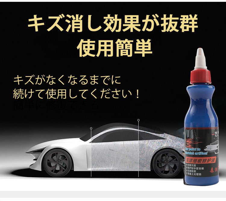 【車用キズ消し】擦り傷修復、汚れ除去、ツヤ出し、撥水、使用簡単